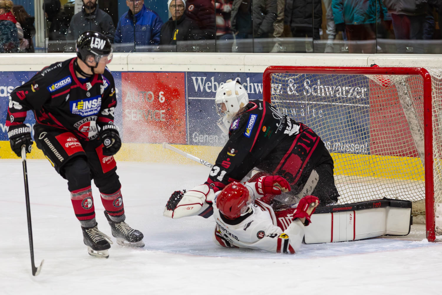 Dabei sahen die knapp 400 Zuschauer trotz des fast schon nach „Fußball-Ergebnis“ anmutenden Spielverlaufs eine durchaus packende, schnelle und intensive Partie. Denn gleich von Beginn an startete die Begegnung ohne große Abtastphase mit ordentlich Tempo. Doch wirklich gefährlich wurde es anfangs vor den Toren nicht. Erst nach zehn Minuten musste ESV-Keeper David Blaschta gleich zweimal richtig stark eingreifen, um den Rückstand zu verhindern. Miesbach hatte in den folgenden Minuten deutlich Rückenwind und nutzte das dann auch gleich im ersten Überzahlspiel zur Führung. Thomas März hatte vor dem Tor einen Blueliner unhaltbar zum 0:1 abfälscht (10.). Um ein Haar hätten die Hausherren danach auch gleich nachgelegt, doch Matej Pekers Versuch tanzte gerade noch so vor der Linie (13.) und bei einem Alleingang von Justi Späth war erneut der wachsame Blaschta zur Stelle (14.). Anschließend wurde das Spiel wieder ausgeglichener, doch die Buchloer verpassten bis zum ersten Seitenwechsel einen möglichen Ausgleich und das trotz doppelter Überzahl zu Ende des ersten Abschnitts.