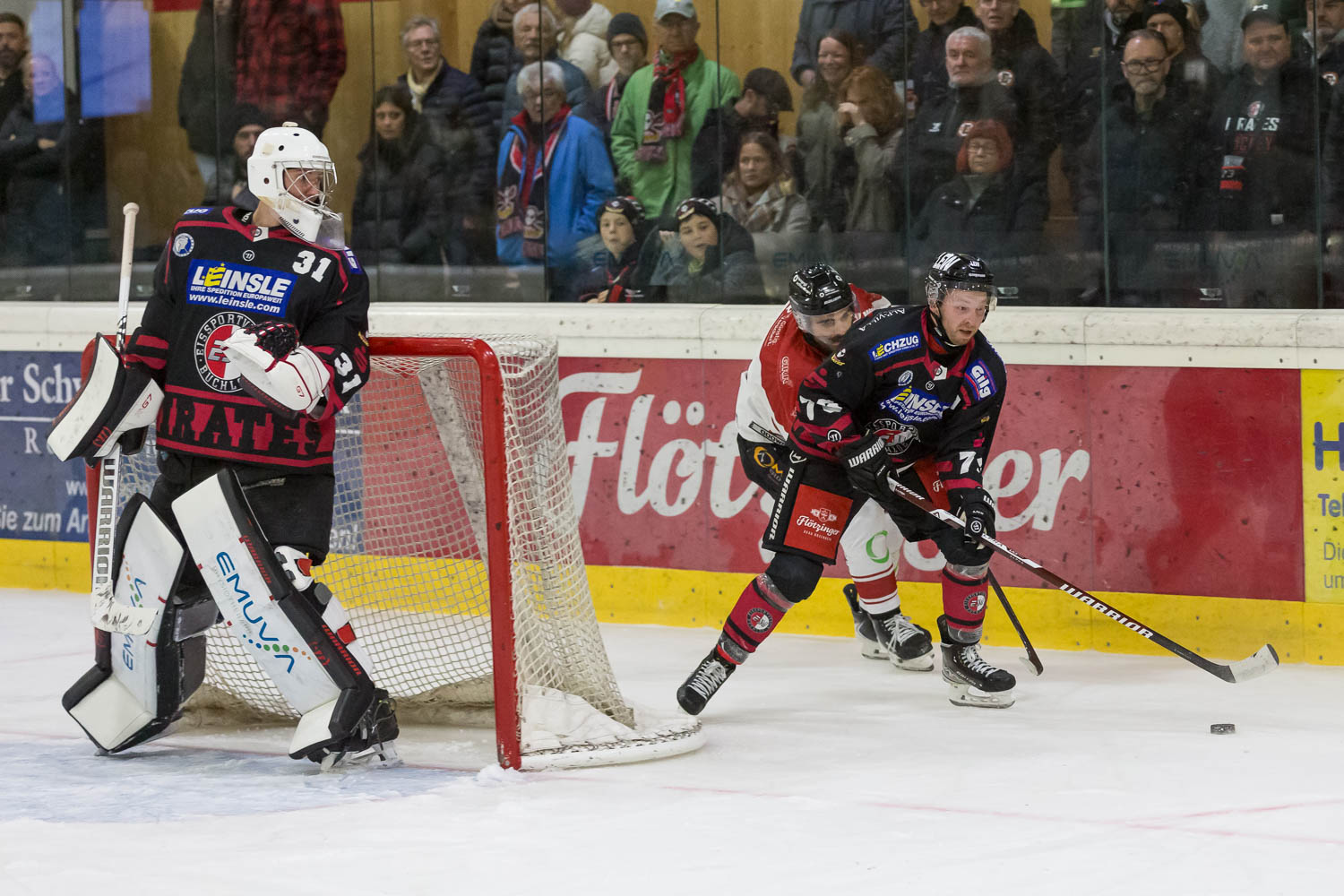 Buchloe (chs) Keine Punkte im zweiten Nachbarschaftsduell des Wochenendes für die Buchloer Piraten. Nach dem 4:1 Heimsieg am Freitag im Derby gegen den HC Landsberg war am Sonntagabend der Tabellenführer EHC Königsbrunn eine Nummer zu groß für die Freibeuter, die am Ende doch klar mit 1:6 (0:1, 1:3, 0:2) bei den Pinguinen unterlagen. Während der unangefochtene Spitzenreiter somit zu Hause weiter seine weiße Weste wahrt und ungeschlagen bleibt, verpassten die Gennachstädter die nächsten Zähler im nach wie vor engen Kampf um die Top 10 Ränge. Zumindest konnten die zehntplatzierten Buchloer an diesem Wochenende durch den Freitagserfolg weiter ihr Polster von drei Punkten auf Rang elf – auf dem nach einem 6-Punkte Wochenende inzwischen die Schongau Mammuts stehen – bewahren.
