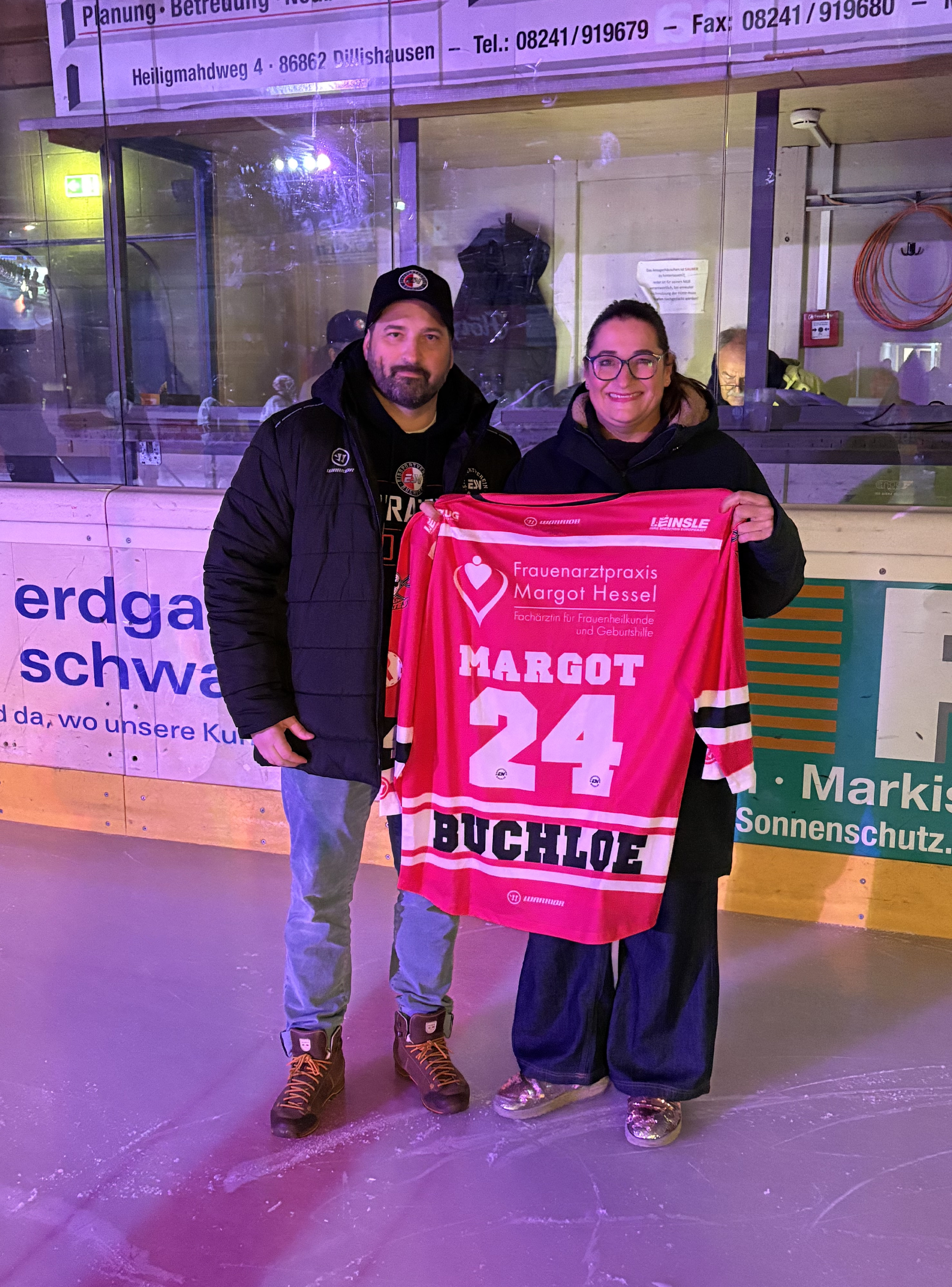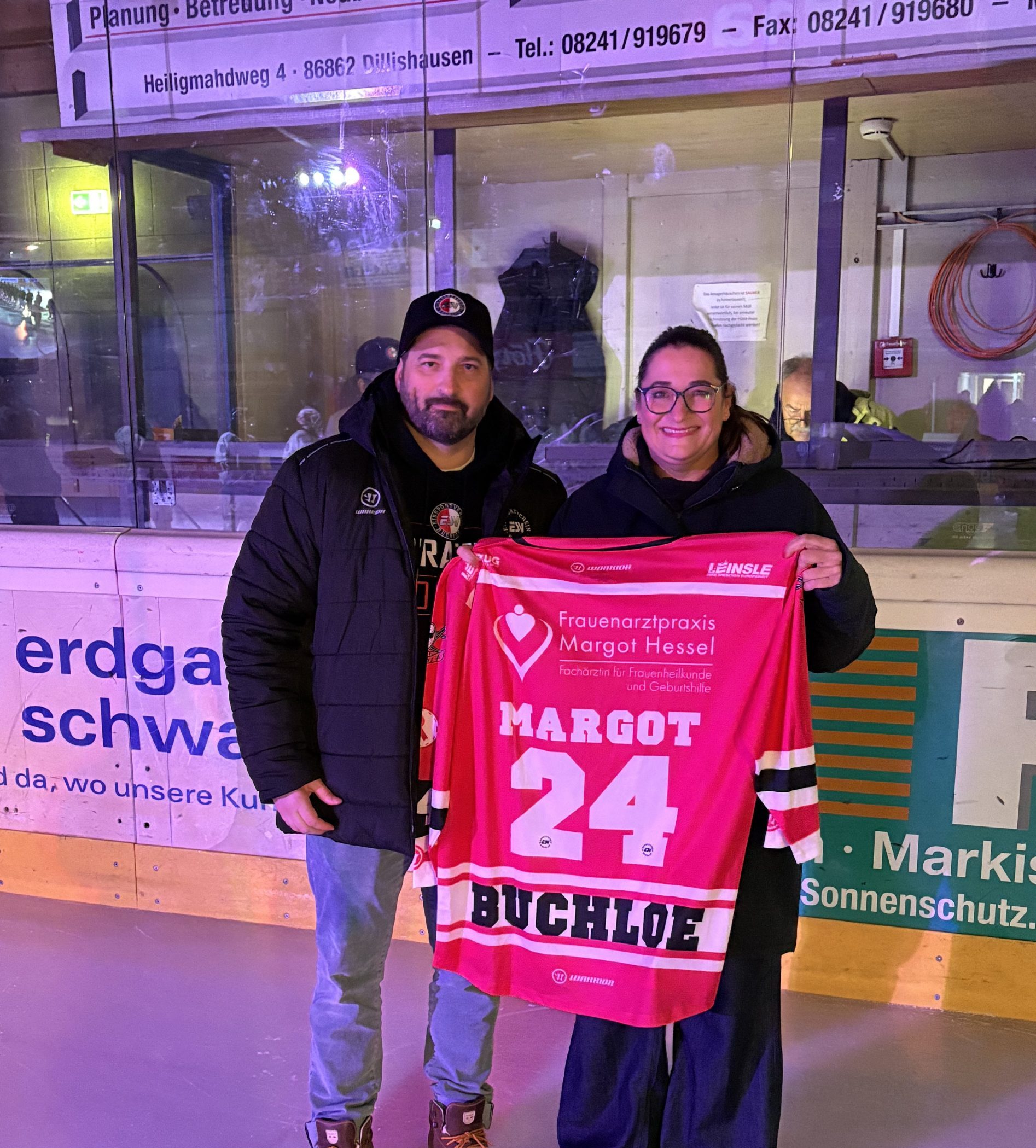 Die Buchloer sind daher sehr froh und glücklich, dass man mit 630 verkauften Losen und einer stolzen Spendensumme von 2.500€ auch einen kleinen Beitrag zur Erkennung, Vorbeugung und Bekämpfung dieser tückischen Krankheit leisten kann. Ein großes Dankeschön geht daher an alle, die mit ihrem Loskauf dazu beigetragen haben und auch ganz besonders an Margot Hessel, die mit ihrer Frauenarztpraxis als Hauptsponsor die Pinktober-Trikots ebenfalls maßgeblich unterstützt hat.