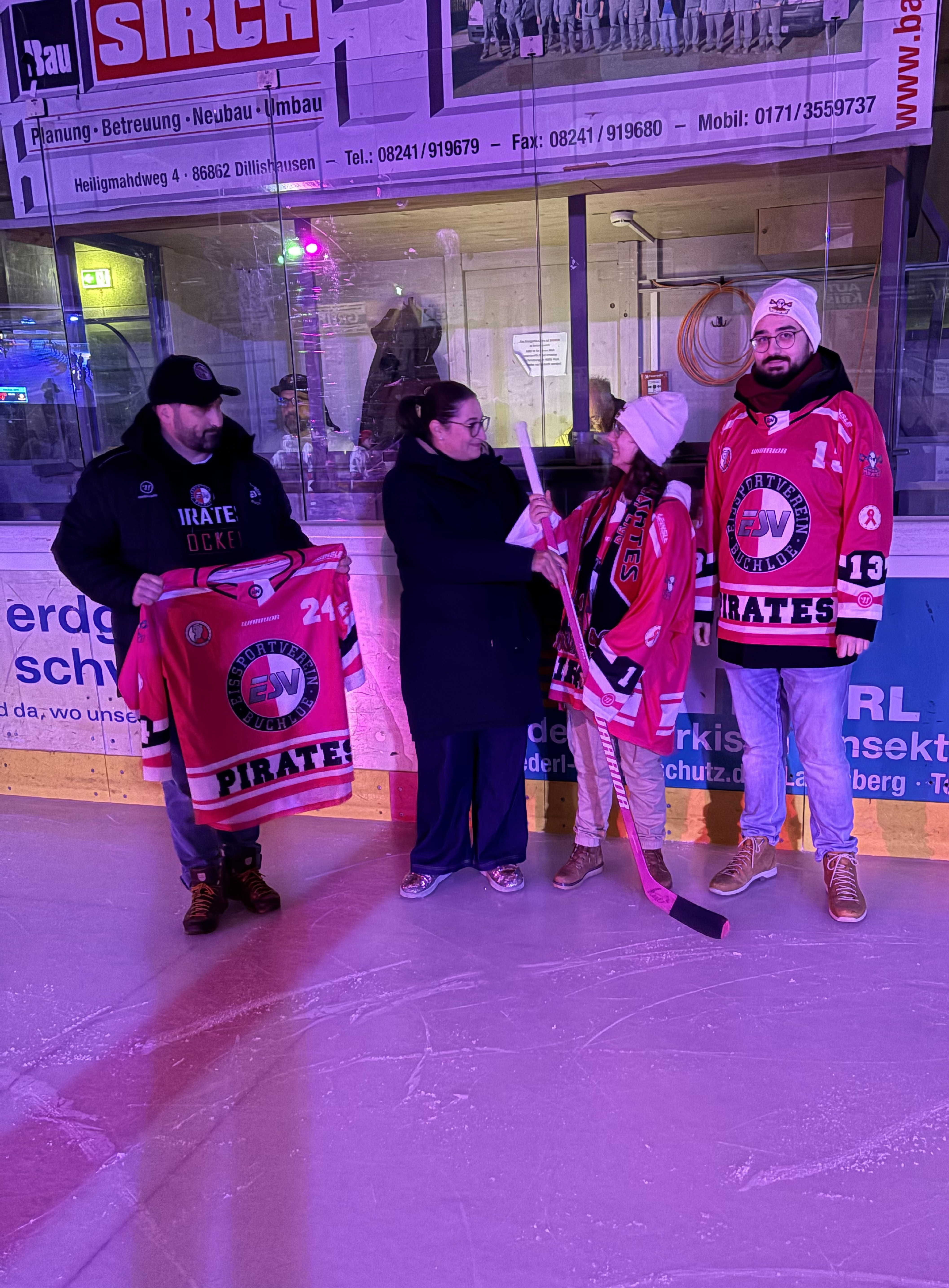 Buchloe (chs) Der Oktober, der Monat der in Deutschland hinlänglich als der Monat für die Brustkrebsvorsorge bekannt ist, war auch beim ESV Buchloe im Fokus für die wichtige Sensibilisierung dieser Thematik. In klassisch pinken Trikots wärmten sich die Freibeuter den kompletten Oktober über auf, um Werbung zu machen und vor allem, um Spenden für den guten Zweck zu sammeln. Denn im Rahmen der Pinktober-Aktion wurden während der Heimspiele Lose verkauft, bei denen die pinken Sondertrikots aller ESV-Spieler gewonnen werden konnten. Zudem gab es als Hauptpreis auch noch einen pinken Schläger von ESV-Verteidiger Dieter Orendorz zu gewinnen.
