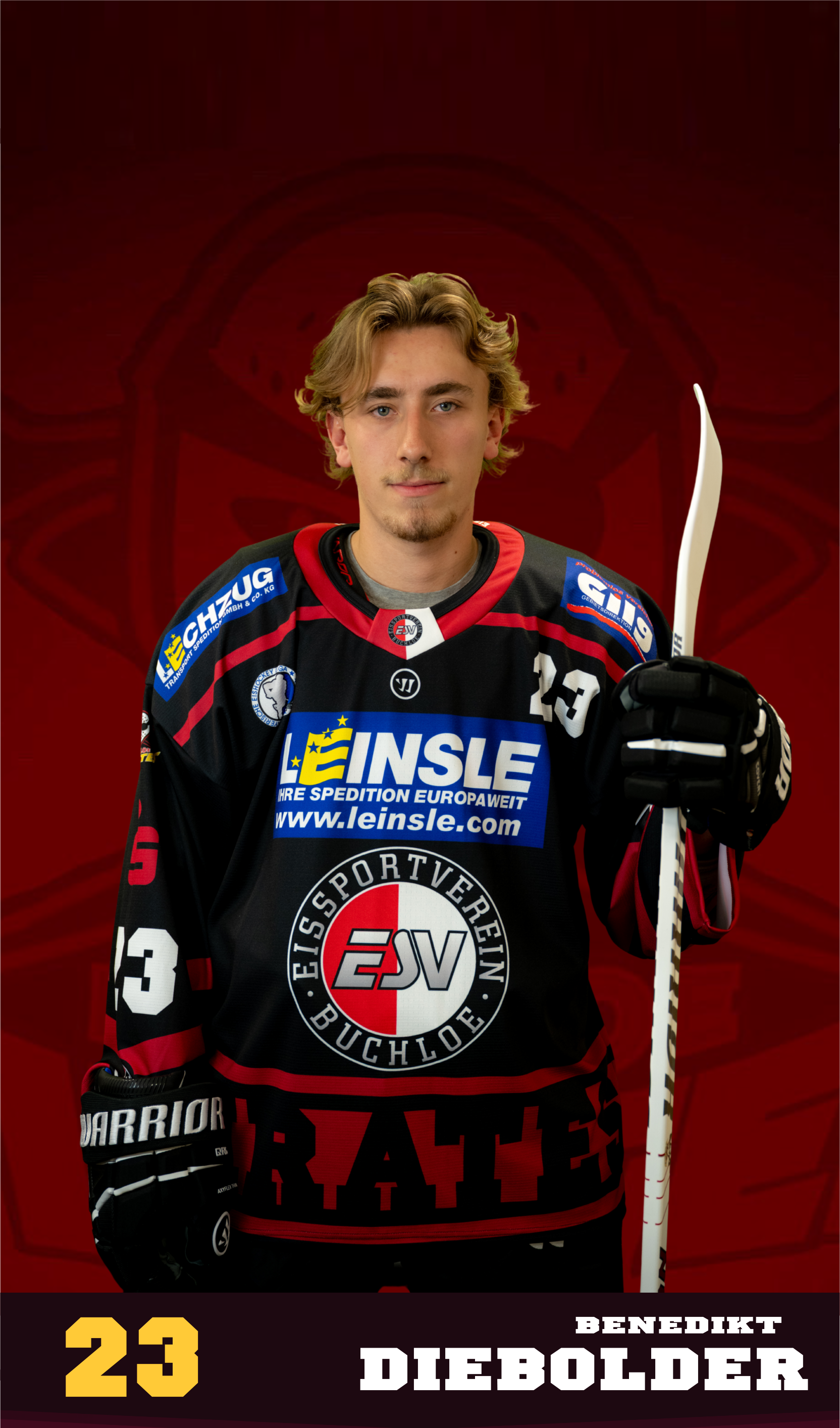 23 Benedikt Diebolder V. Maximilian Decker (FL)S. Tim Lubitz (FL)S. Andrej Teplouchow (FL)TW. Clemens Wiedemann (FL)S. David Moor (FL)Assist. Alexander ReichelmeirAssist. Tobias KastenmeierHead. Christopher LerchnerDavid Simm (FL)Philipp Wiche (FL)Team-Manager. David StrodelSportlicher Koordinator. Christopher LerchnerSportlicher Leiter. Florian WarkusHead. Waldemar DietrichPhysio. Xaver KnittelTeamarzt. Georg HesselStaff. Walter SchindlerStaff. Bubi LedelMannschaftsführer. Holger RauhStaff. Claus-Peter Lang01. Dominic Guran5. Niklas Holzschneider6. Robert Wittmann9. Nico Nieberle10. Christian Guran11. Joey Lewis13. Luca Asner15. Adrian Weis17. Moritz Simon19. Adriano Carciola22. Till Schranz22. Markus Vaitl22. Matthias Konietzny23. Benedikt Diebolder25. Marc Krammer26. Christian Wittmann31. David Blaschta33. Alexander Lieske35. Daniel Blankenburg39. Fabian Hartmann40. Michal Petrák47. Alexander Thiel57. Nils Asner62. Dieter Orendorz63. Timi Liivalahti69. Felix Schurr71. Johannes Keller73. Michal Telesz79. Fabian Strobel84. Andreas Schorer87. Tim Söldner88. Demeed Podrezov89. Lukas Bucher89. Philipp Birk96. Alexander Krafczyk98. Jonas Mikulic98. Philipp Keil NameBenedikt DiebolderNationalitätDeutschlandPositionStürmerGröße180cmGeburtstag4. September 2004Alter21BayernligaSaisonMannschaftGPGAPPPGPM2023/24ESV Buchloe142130.21142024/25ESV Buchloe30816240.80272025/26ESV Buchloe41010.254Bayernliga AbstiegsrundeSaisonMannschaftGPGAPPPGPM2023/24ESV Buchloe882101.2522024/25ESV Buchloe63691.508Bayernliga PlaydownsSaisonMannschaftGPGAPPPGPM2024/25ESV Buchloe111560.552Bayernliga Pre-PlayoffsSaisonMannschaftGPGAPPPGPM2023/24ESV Buchloe30110.330VorbereitungSaisonMannschaftGPGAPPPGPM2024/25ESV Buchloe62350.8342025/26ESV Buchloe64371.178