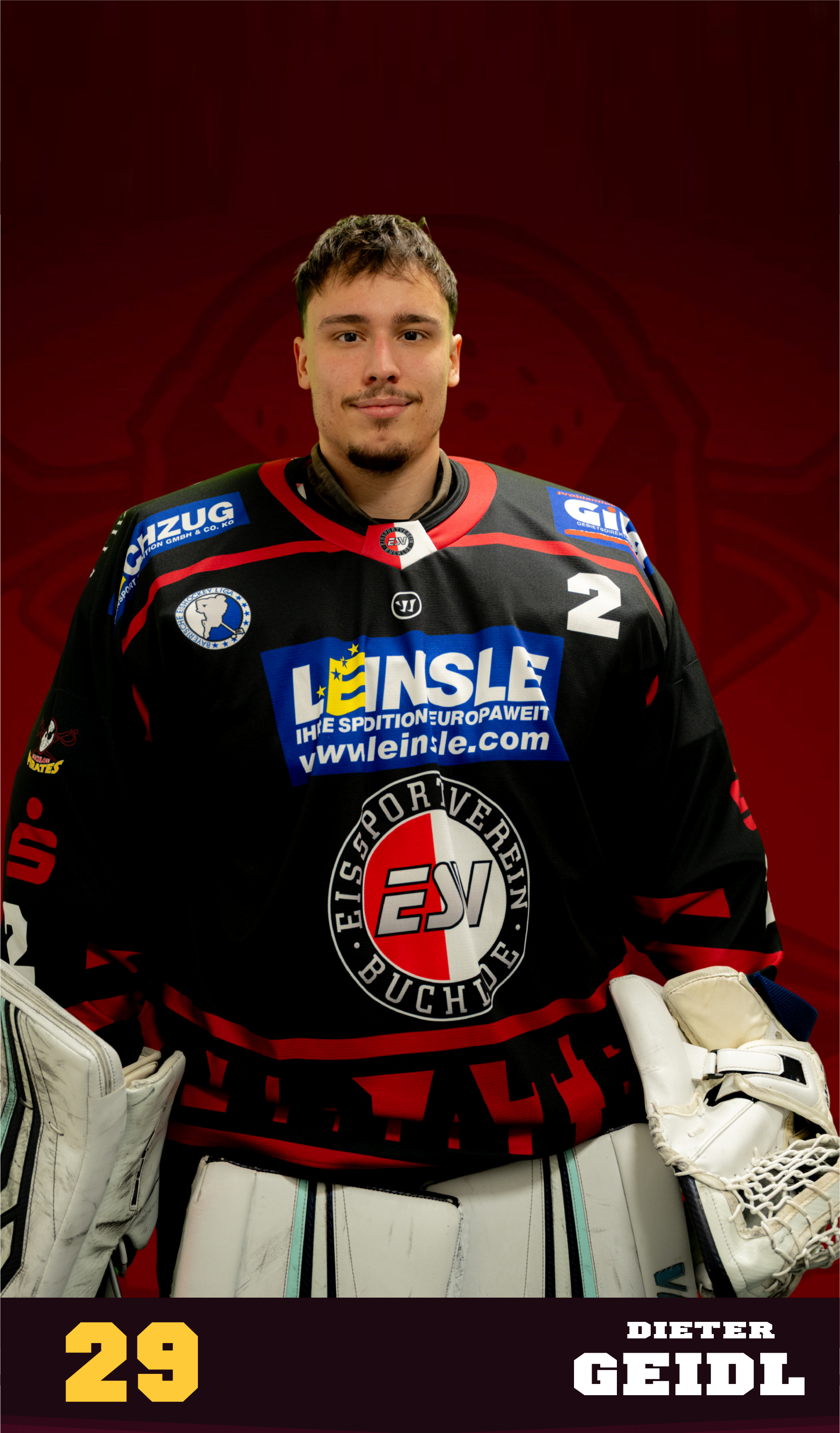 29 Dieter Geidl Sportlicher Leiter. Florian WarkusStaff. Claus-Peter LangStaff. Bubi LedelStaff. Walter SchindlerMannschaftsführer. Holger RauhTeamarzt. Georg HesselTeam-Manager. David StrodelPhysio. Xaver KnittelSportlicher Koordinator. Christopher LerchnerHead. Dominic Weis01. Dominic Guran6. Robert Wittmann9. Nico Nieberle10. Christian Guran11. Joey Lewis13. Luca Asner15. Adrian Weis19. Adriano Carciola21. Mateo Cabral22. Matthias Konietzny24. David Simm (FL)25. Marc Krammer27. Philipp Wiche (FL)29. Dieter Geidl31. David Blaschta33. Alexander Lieske39. Fabian Hartmann40. Michal Petrák47. Alexander Thiel57. Nils Asner62. Dieter Orendorz69. Felix Schurr71. Johannes Keller73. Michal Telesz88. Demeed Podrezov89. Philipp Birk91. Marco Schwarz96. Alexander Krafczyk98. Philipp Keil NameDieter GeidlNationalitätCzechiaDeutschlandPositionTorwartGeburtstag3. April 2003Alter22