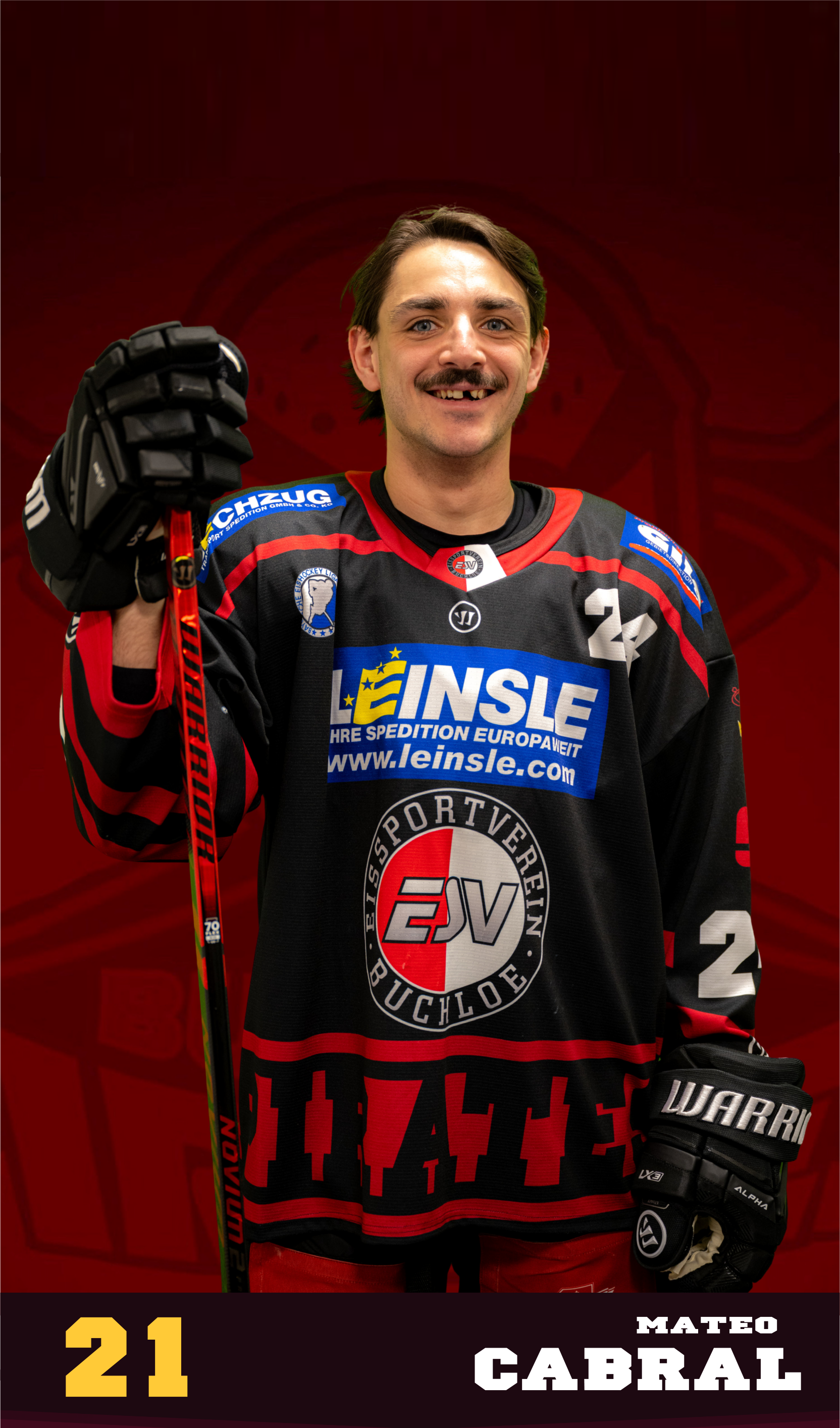 21 Mateo Cabral Staff. Claus-Peter LangStaff. Bubi LedelStaff. Walter SchindlerTeam-Manager. David StrodelHead. Dominic WeisMannschaftsführer. Holger RauhTeamarzt. Georg HesselSportlicher Koordinator. Christopher LerchnerSportlicher Leiter. Florian WarkusPhysio. Xaver Knittel01. Dominic Guran6. Robert Wittmann9. Nico Nieberle10. Christian Guran11. Joey Lewis13. Luca Asner15. Adrian Weis19. Adriano Carciola21. Mateo Cabral22. Matthias Konietzny24. David Simm (FL)25. Marc Krammer27. Philipp Wiche (FL)29. Dieter Geidl31. David Blaschta33. Alexander Lieske39. Fabian Hartmann40. Michal Petrák47. Alexander Thiel57. Nils Asner62. Dieter Orendorz69. Felix Schurr71. Johannes Keller73. Michal Telesz88. Demeed Podrezov89. Philipp Birk91. Marco Schwarz96. Alexander Krafczyk98. Philipp Keil NameMateo CabralNationalitätKanadaPositionStürmerGeburtstag25. Oktober 1999Alter26BayernligaSaisonMannschaftGPGAPPPGPM2025/26ESV Buchloe874111.384Bayernliga AbstiegsrundeSaisonMannschaftGPGAPPPGPM2025/26ESV Buchloe668142.334