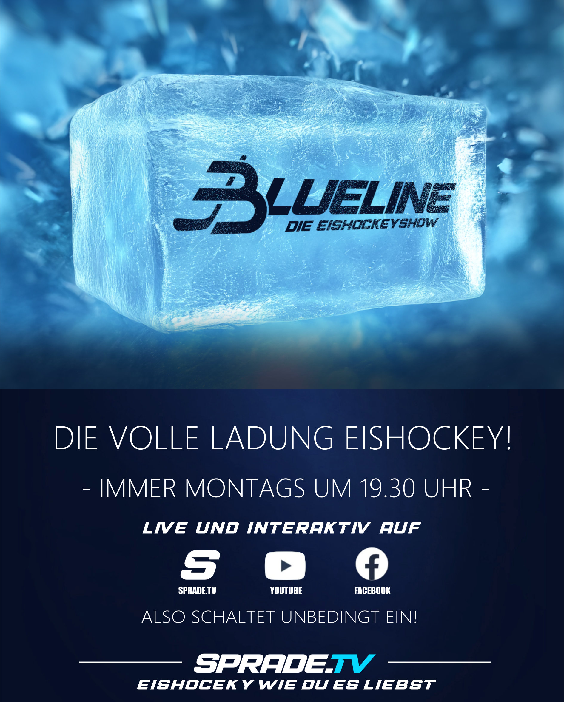 Ihr wollt noch mehr Eishockey? Die volle Ladung gibt es immer montags live ab 19.30 Uhr in der interaktiven Eishockey-Show „Blueline“!